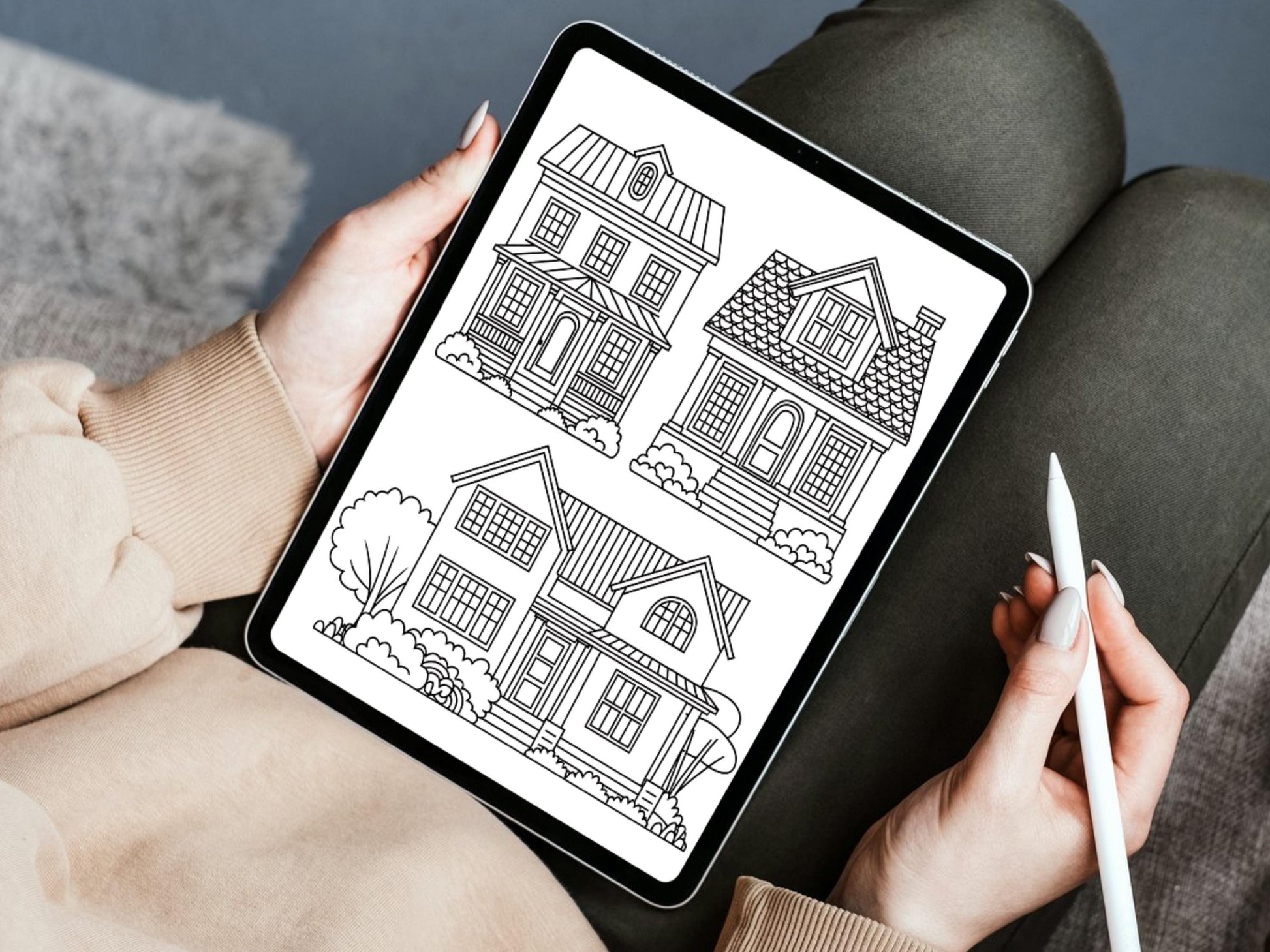 Páginas para colorear de casas: descarga digital acogedora y relajante