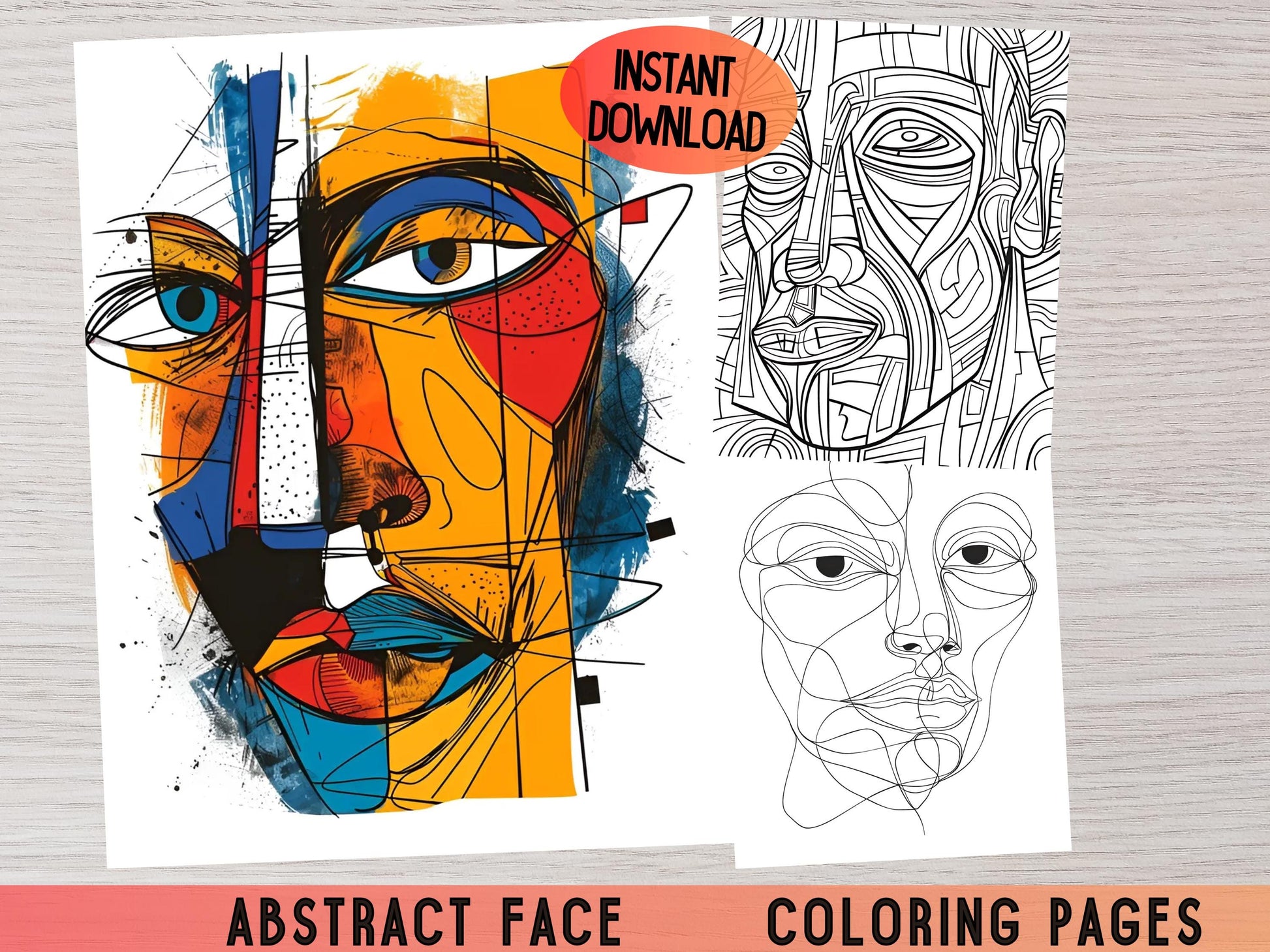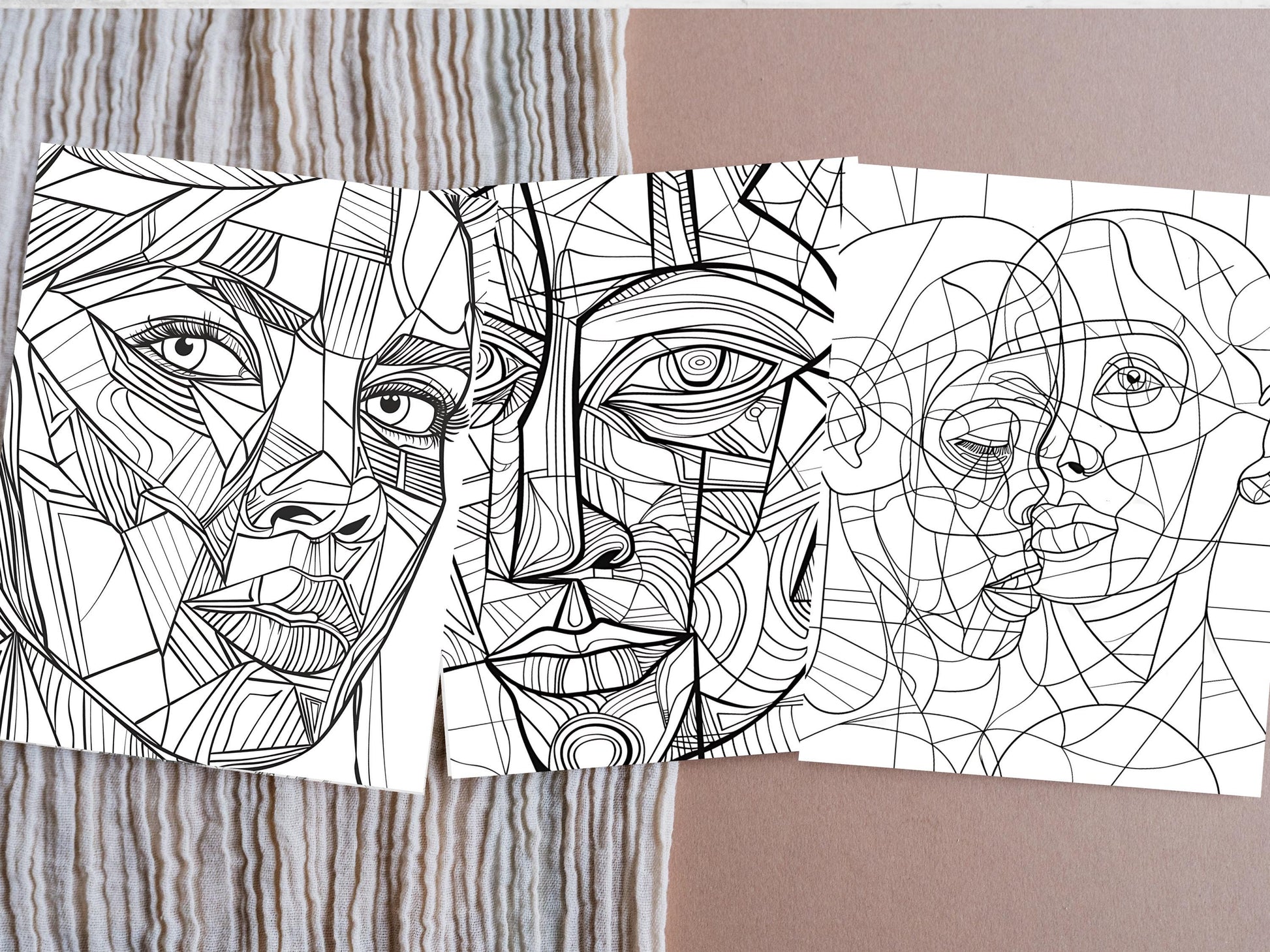 Cada página está cuidadosamente diseñada para brindar una experiencia de coloración audaz y fácil, lo que la hace perfecta tanto para principiantes como para coloristas experimentados. Nuestras páginas para colorear geométricas abstractas y diseños de rostros abstractos le permiten explorar combinaciones de colores, técnicas artísticas y expresión personal de una manera divertida y terapéutica.