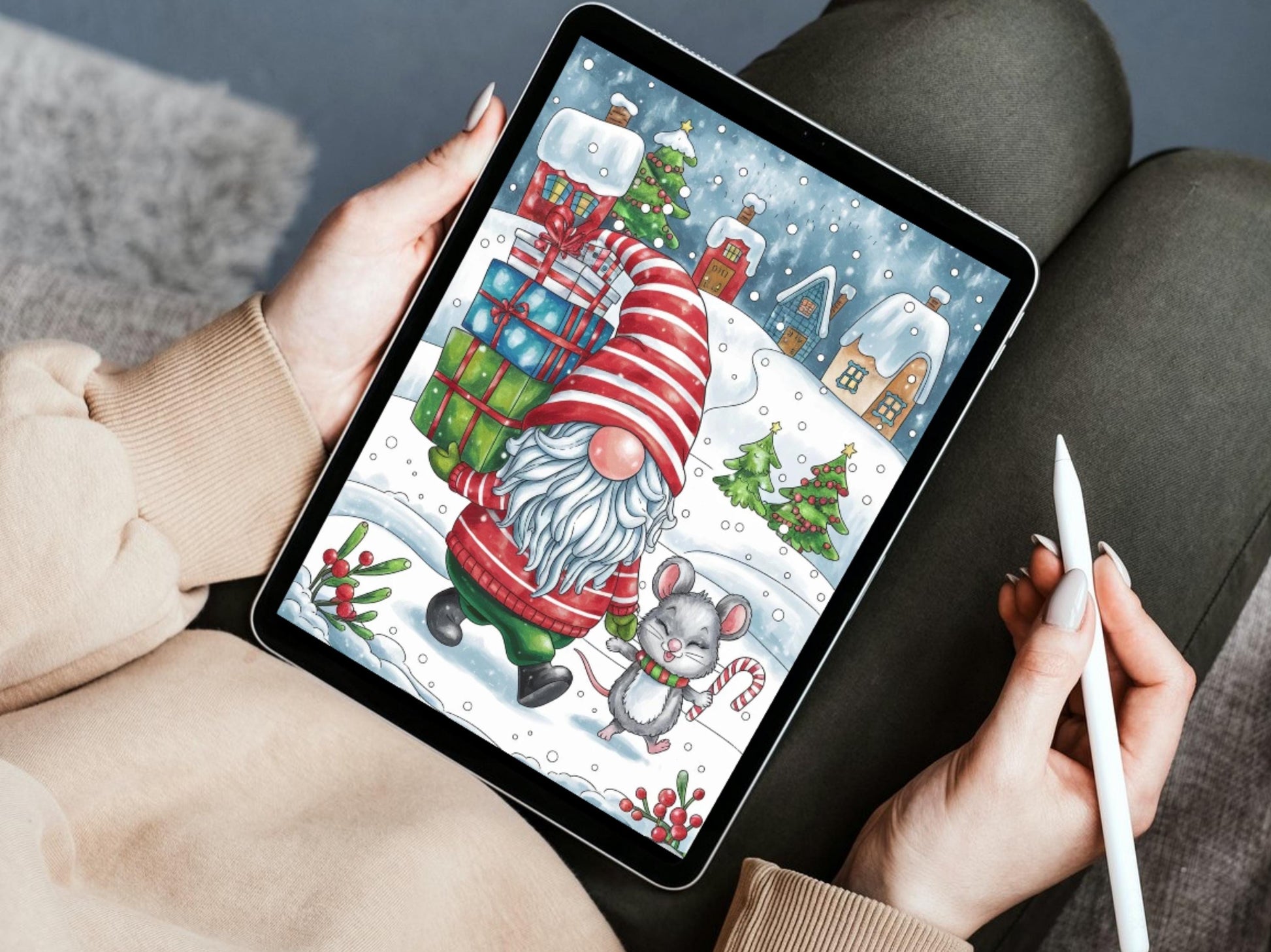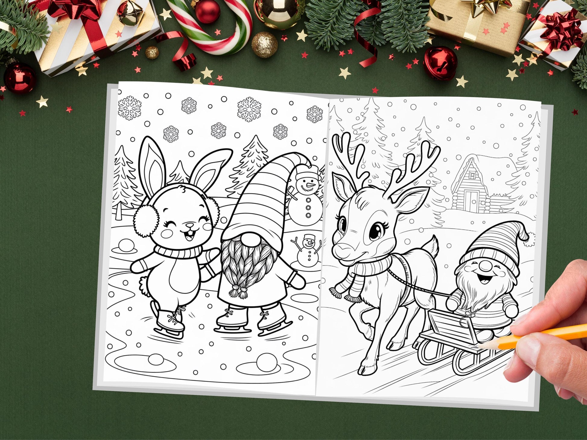 Dibujos para colorear de gnomos navideños, gnomos festivos, animales del bosque de invierno, libro para colorear de vacaciones, dibujos para colorear de invierno, dibujos para colorear de gnomos imprimibles
