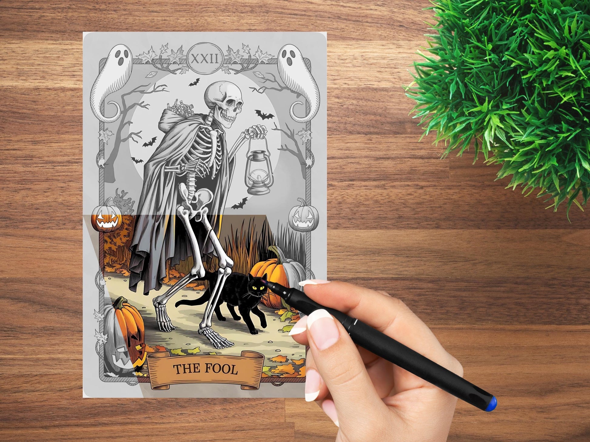 Este libro no solo es una forma relajante de disfrutar del arte de colorear, sino también el complemento perfecto para tu colección de páginas para colorear de Halloween para adultos. Tanto si te gusta el arte esquelético como si simplemente te encantan los libros para colorear espeluznantes con temática de tarot, este libro te sumergirá en el oscuro encanto de Halloween.