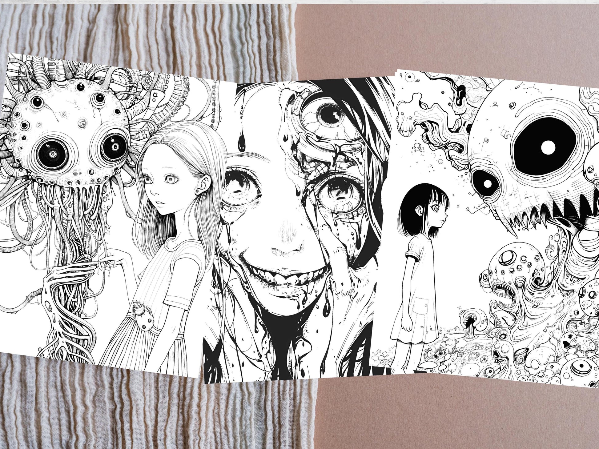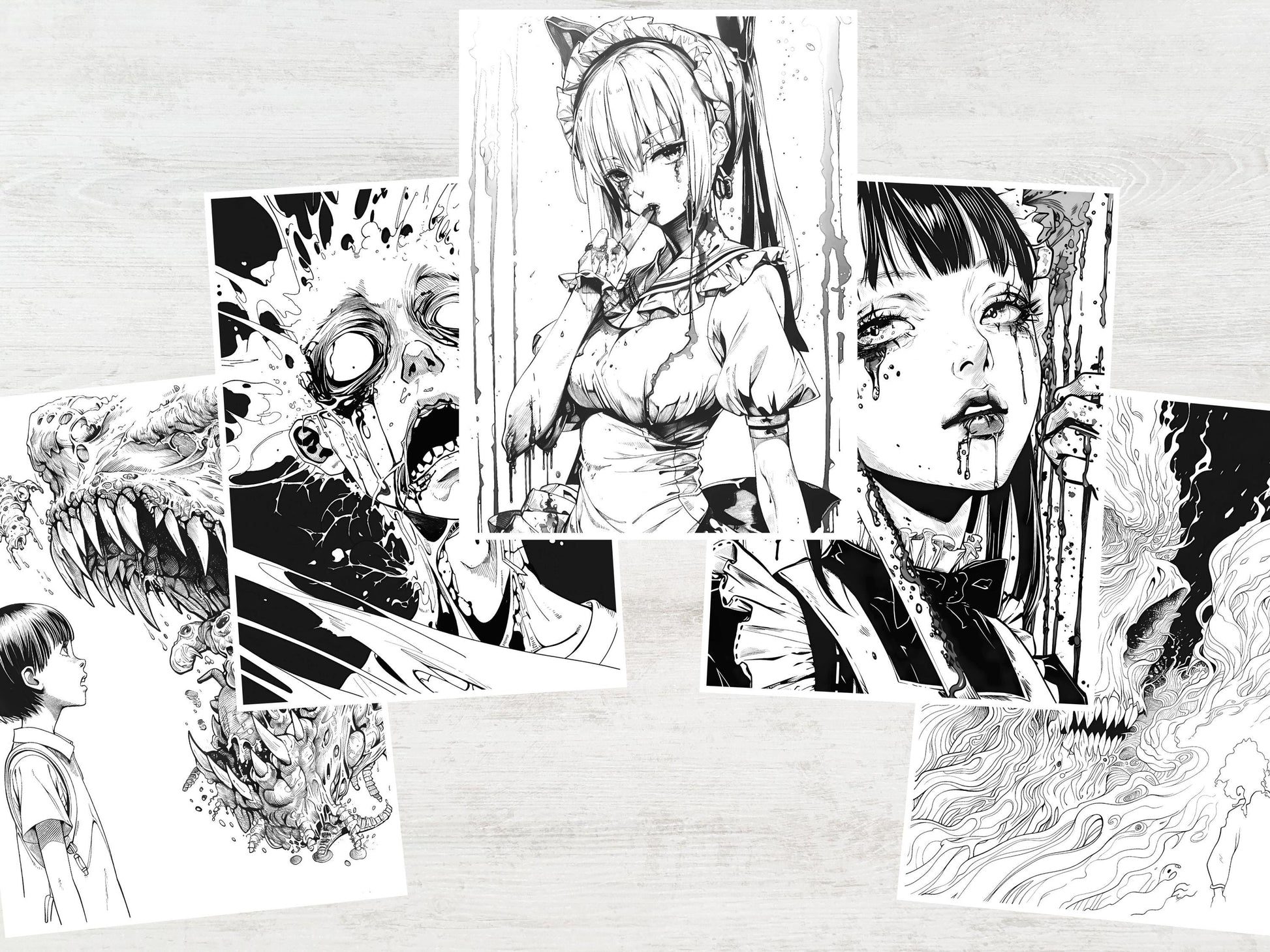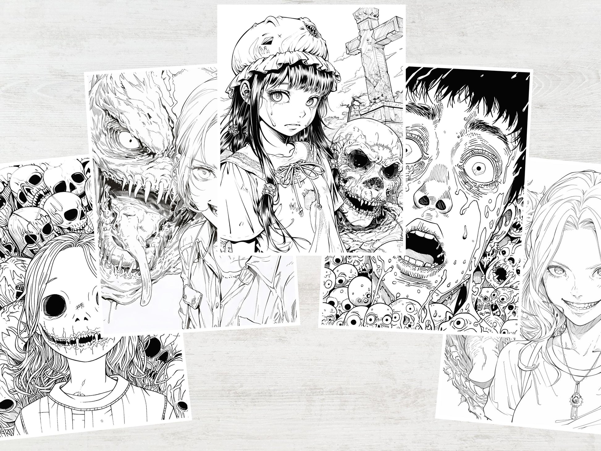 Entra en el escalofriante mundo del manga de terror: libro para colorear digital para adultos
