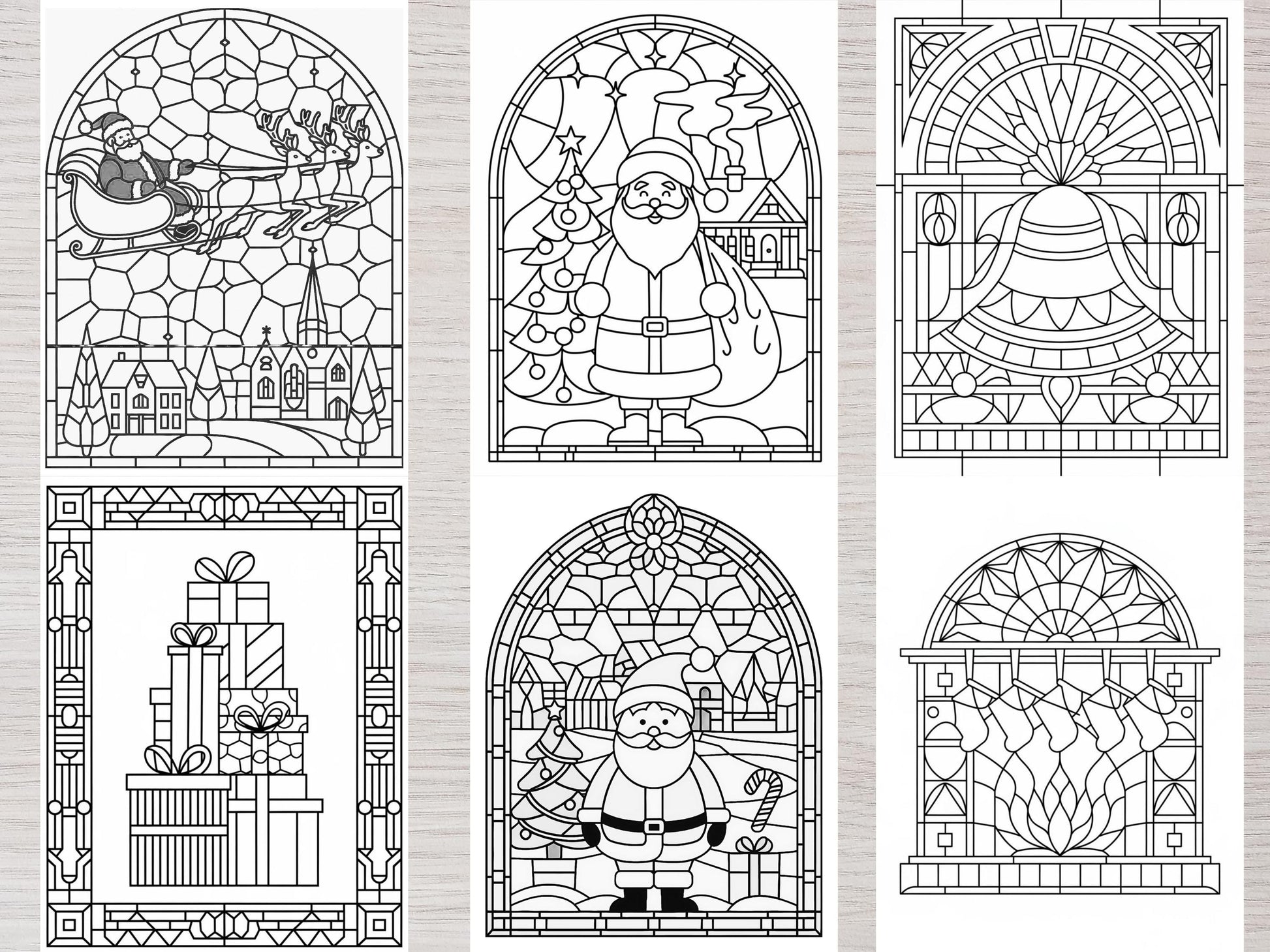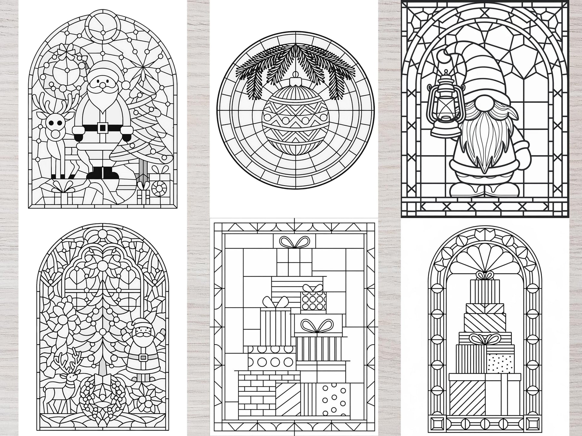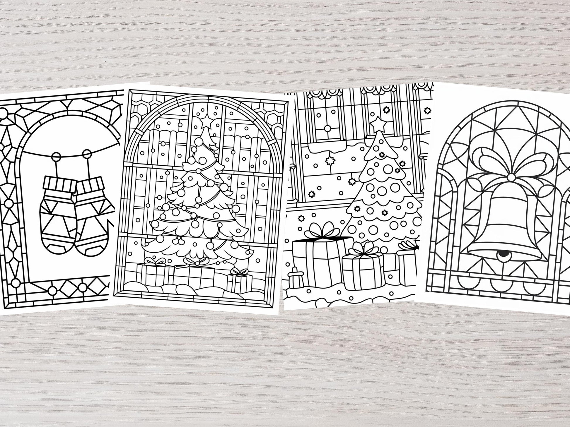 Variedad de diseños: incluye todo, desde páginas para colorear de muñecos de nieve hasta arte de vidrieras navideñas.