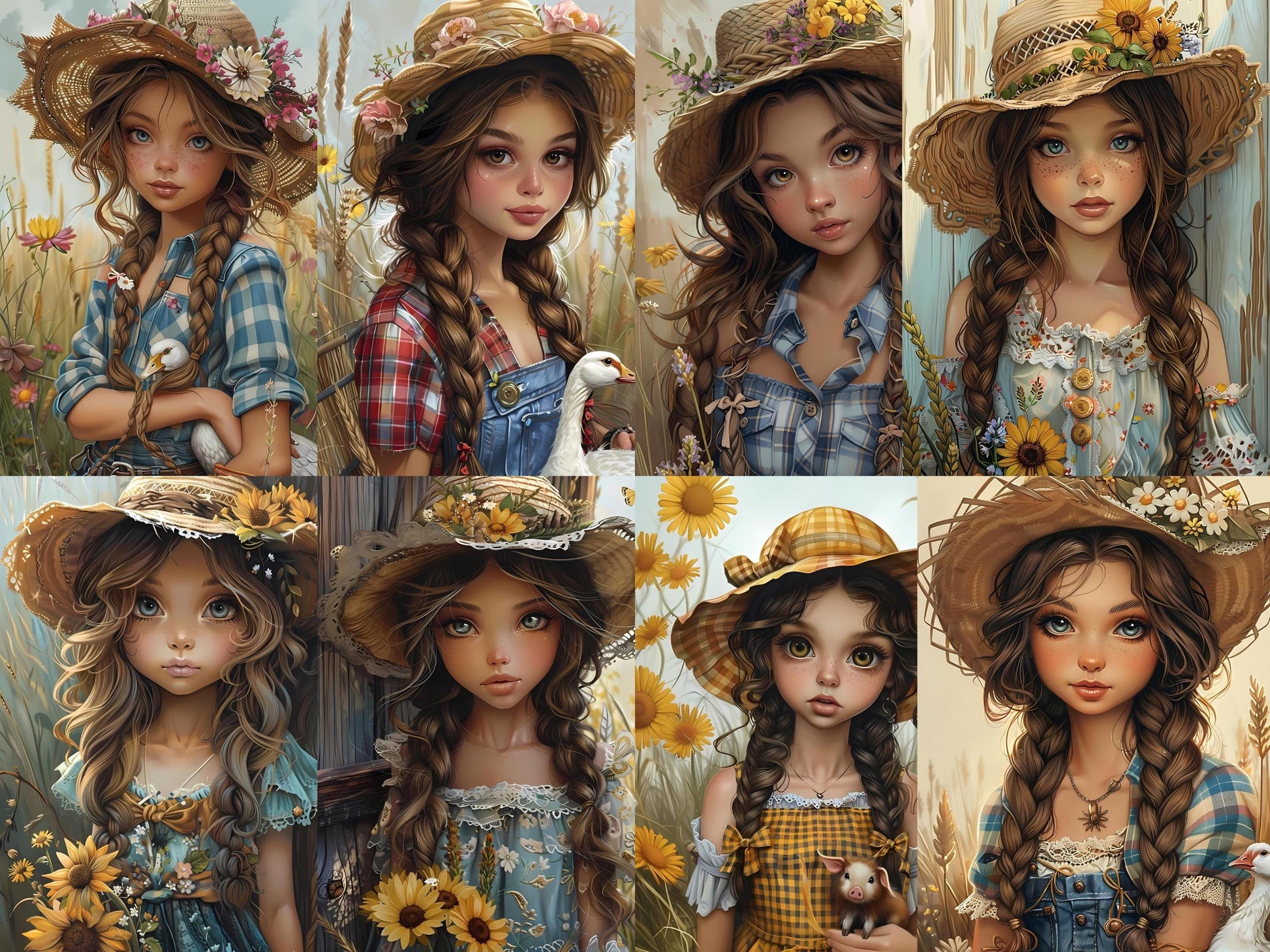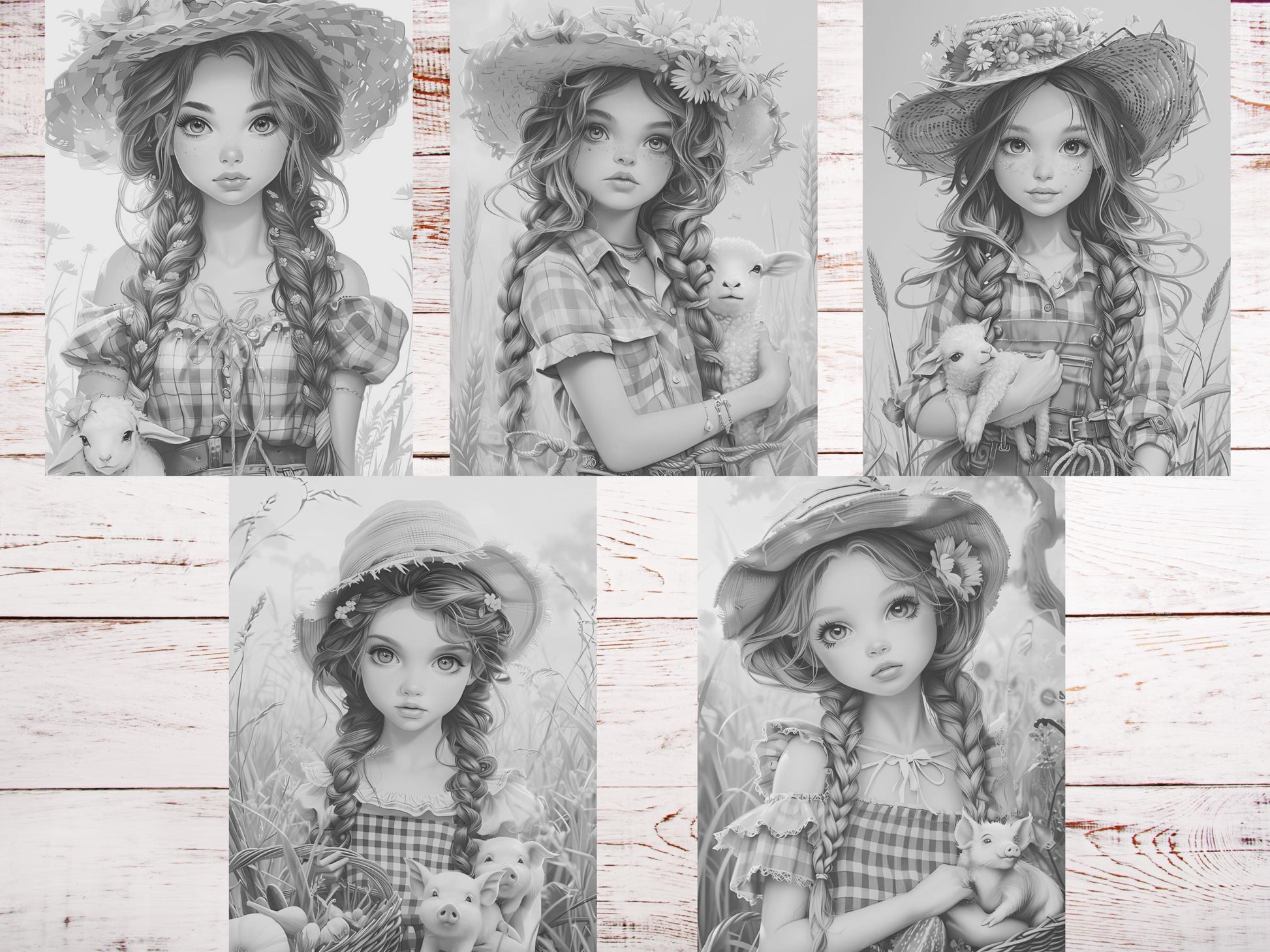 Páginas para colorear de chicas de campo: una variedad de ilustraciones detalladas y encantadoras que representan a las chicas de campo y la vida en la granja.