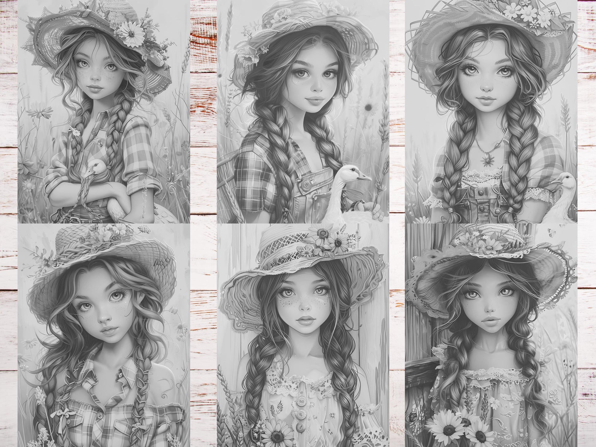 Haz tu pedido ahora y embárcate en una encantadora aventura para colorear con nuestro libro "Páginas para colorear de Chicas Campestres". Deja que tu creatividad florezca mientras das vida a cada escena rústica con tu toque artístico único.