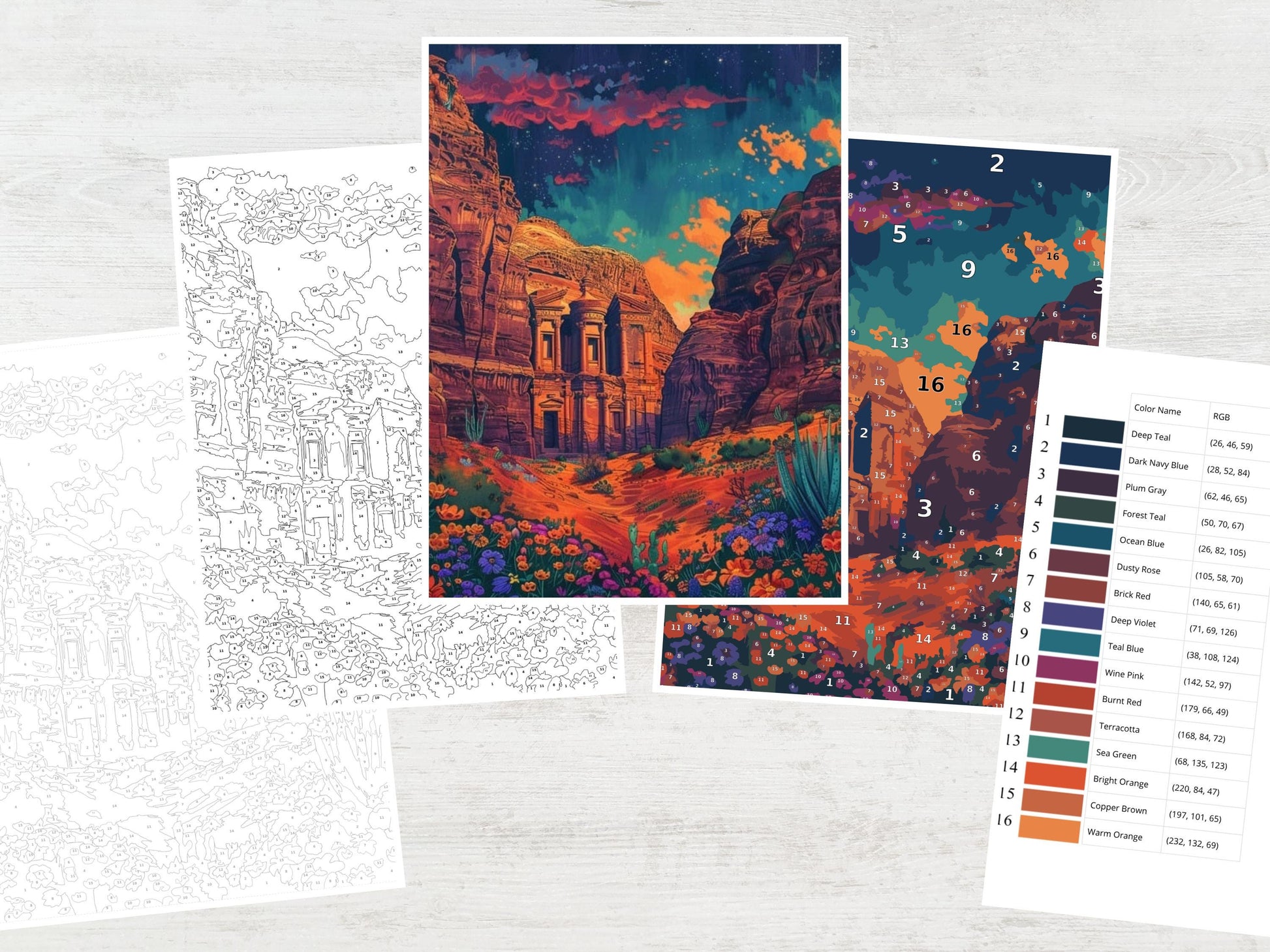 Ya sea que te guste colorear paisajes por números, la pintura digital o colorear conscientemente, esta colección transforma el estrés en creatividad. Cada página es un viaje de concentración, inspiración y expresión artística.