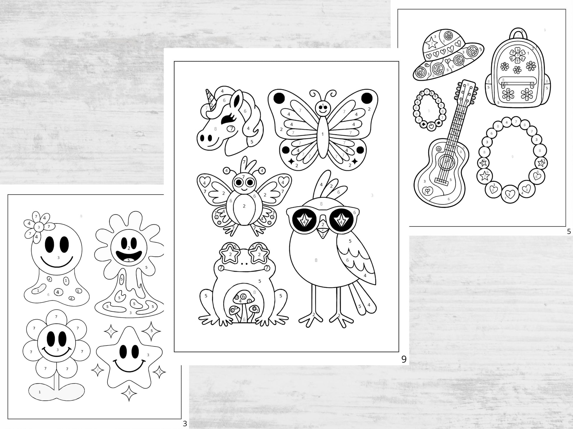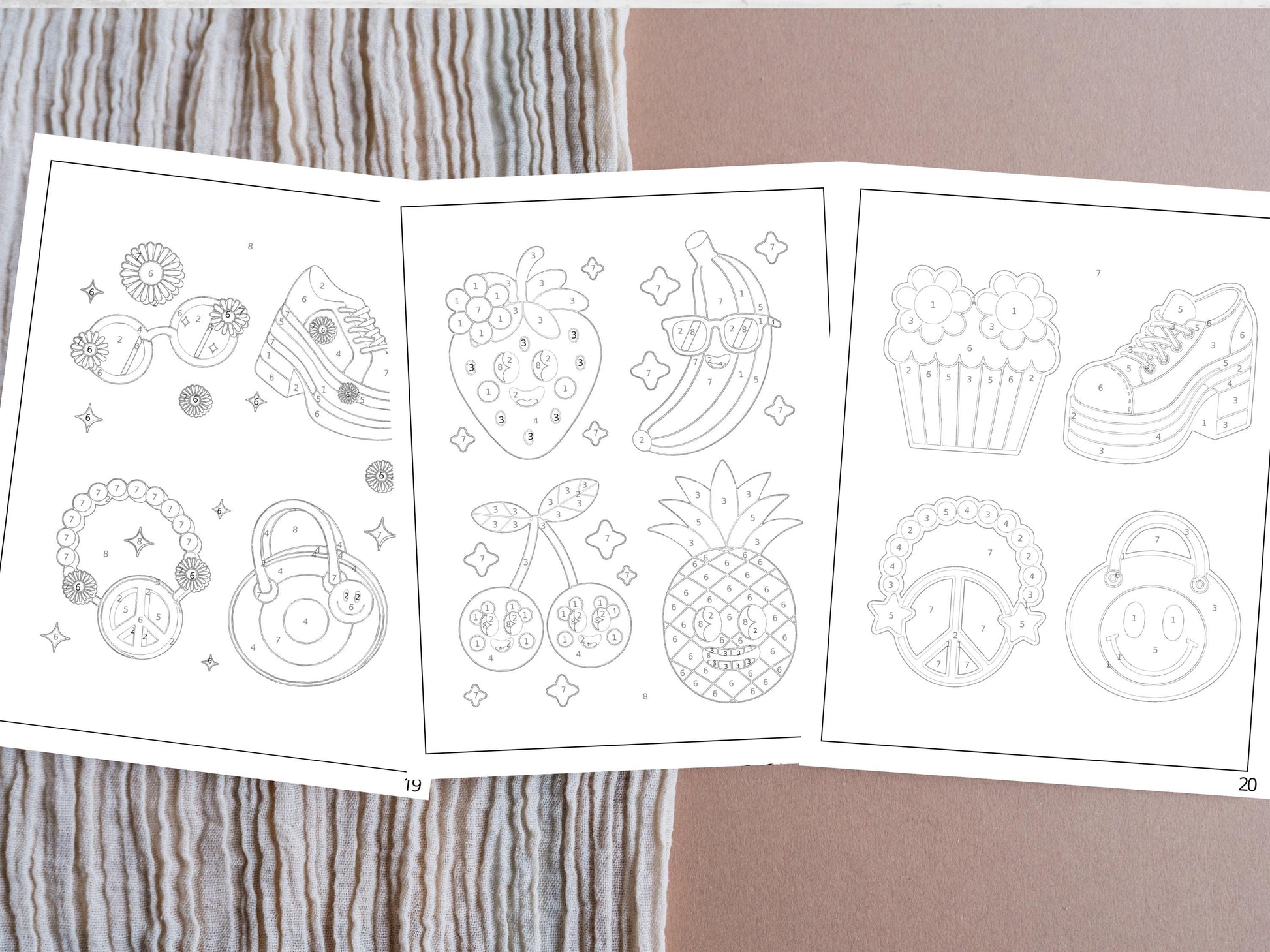 Deja que tu creatividad florezca con esta colección de colorear por números con divertidas páginas florales diseñadas para la relajación, la atención plena y la diversión. Estas páginas únicas y fáciles de colorear le dan un toque retro a tu experiencia de colorear digital o imprimible, perfectas para quienes aman colorear flores y los temas florales.