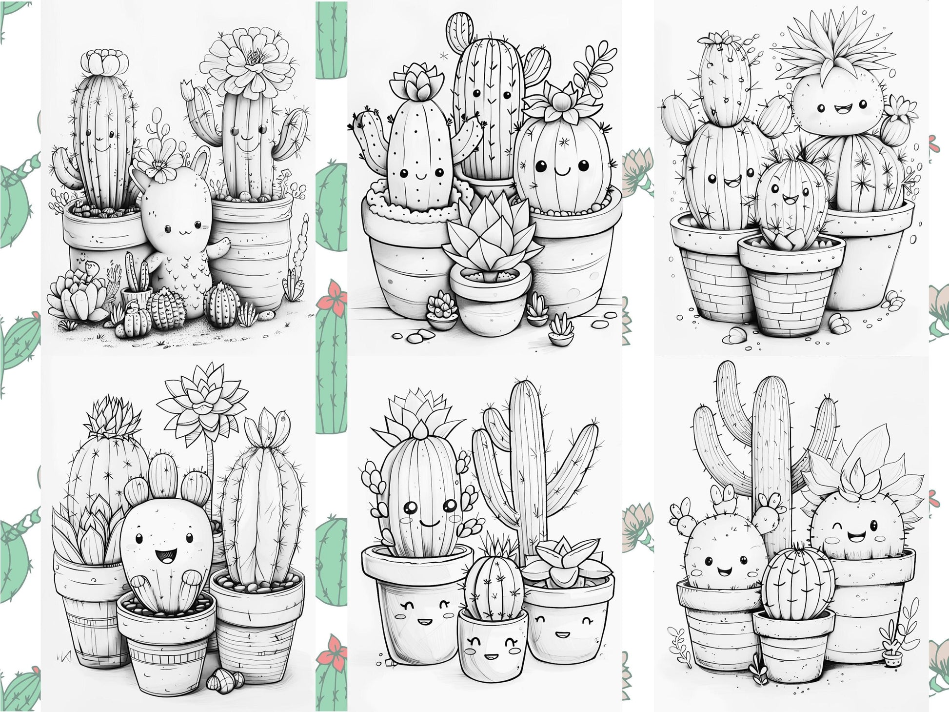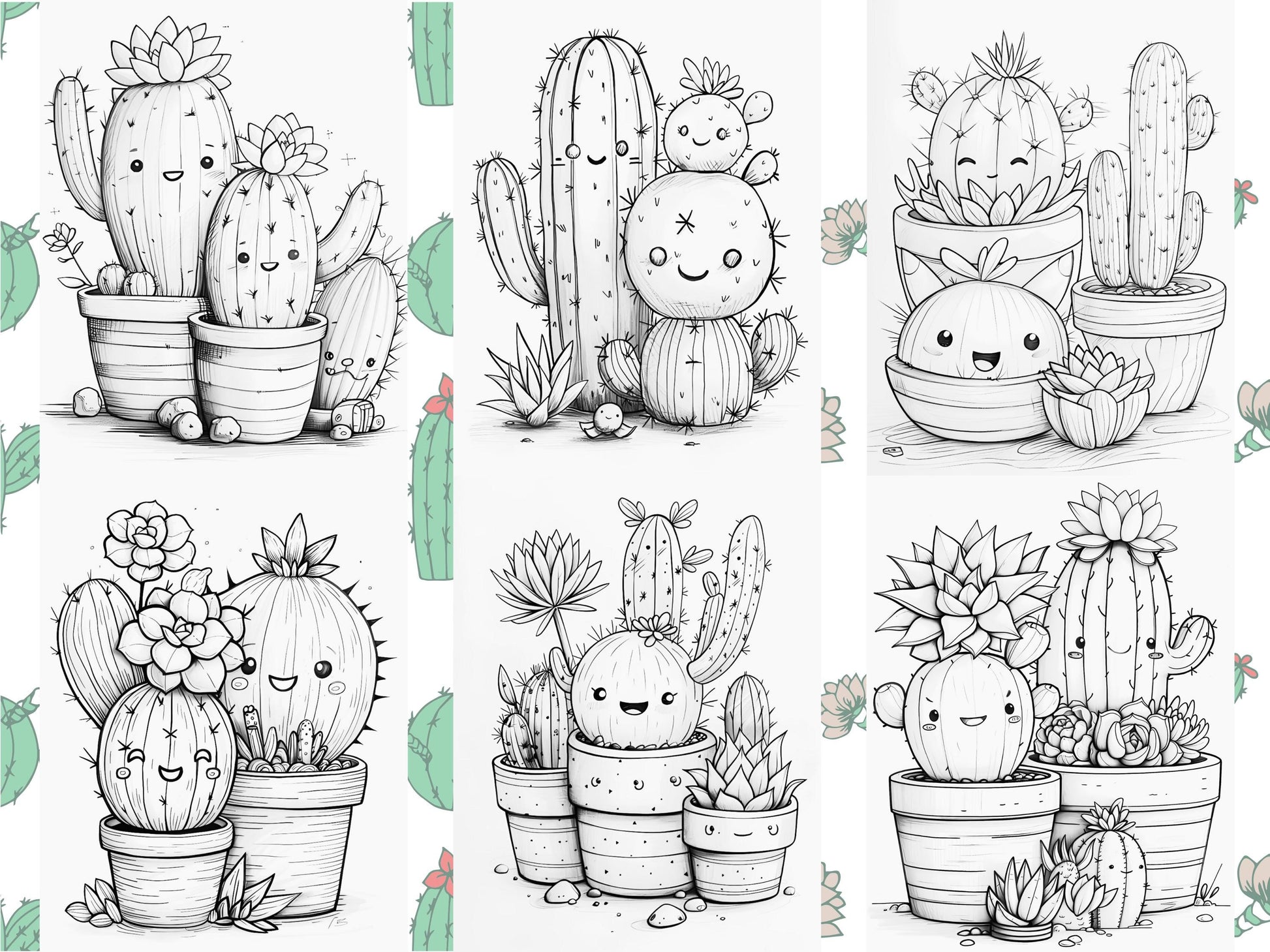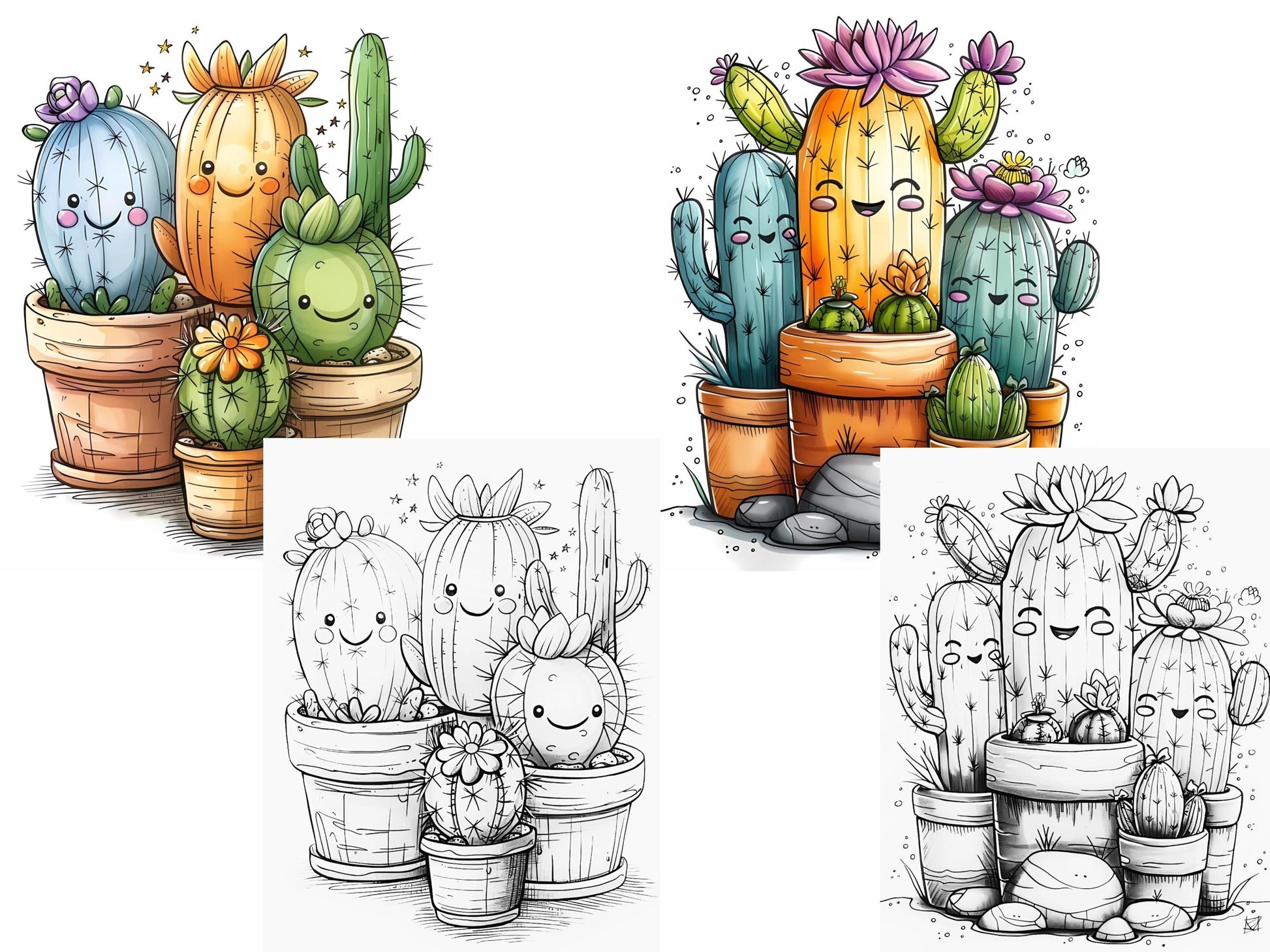 Cactus Kawaii: Adorables ilustraciones de cactus que alegrarán tus sesiones de colorear.