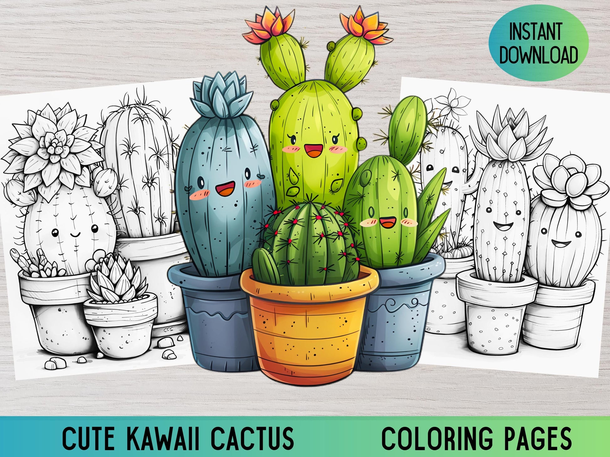 Lindas Páginas Para Colorear Kawaii, Páginas Para Colorear Imprimibles Kawaii, Libro Para Colorear, Impresiones Digitales, Descarga Digital, Cactus Kawaii, Página Kawaii Pdf