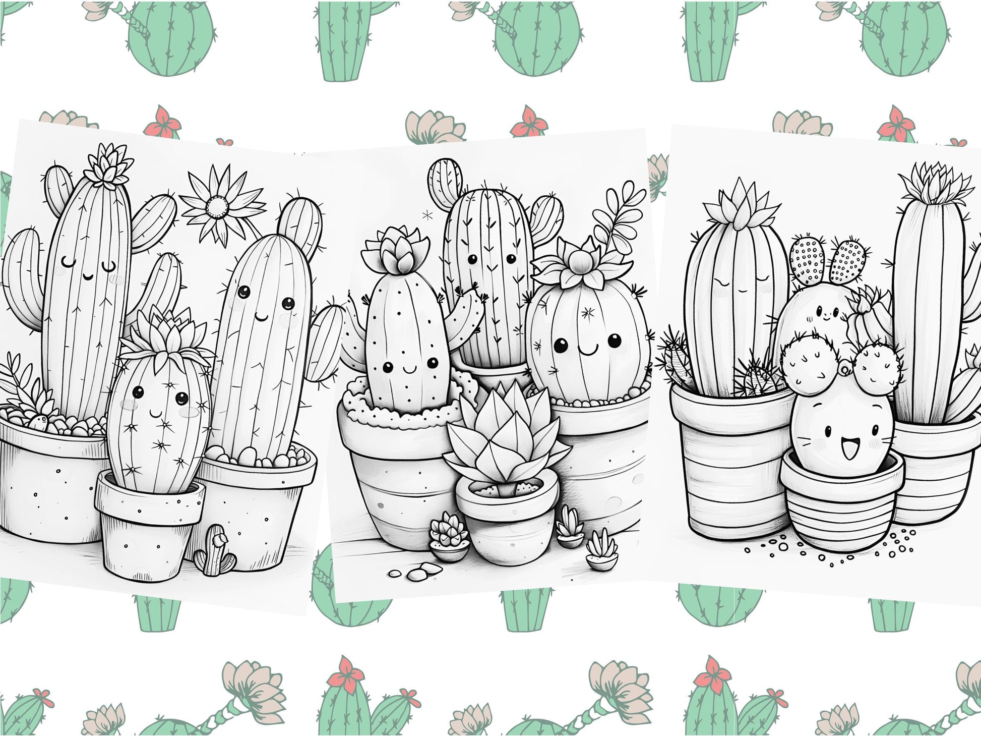 Cute Kawaii Coloring: Deliciosos diseños de cactus que te harán sonreír.