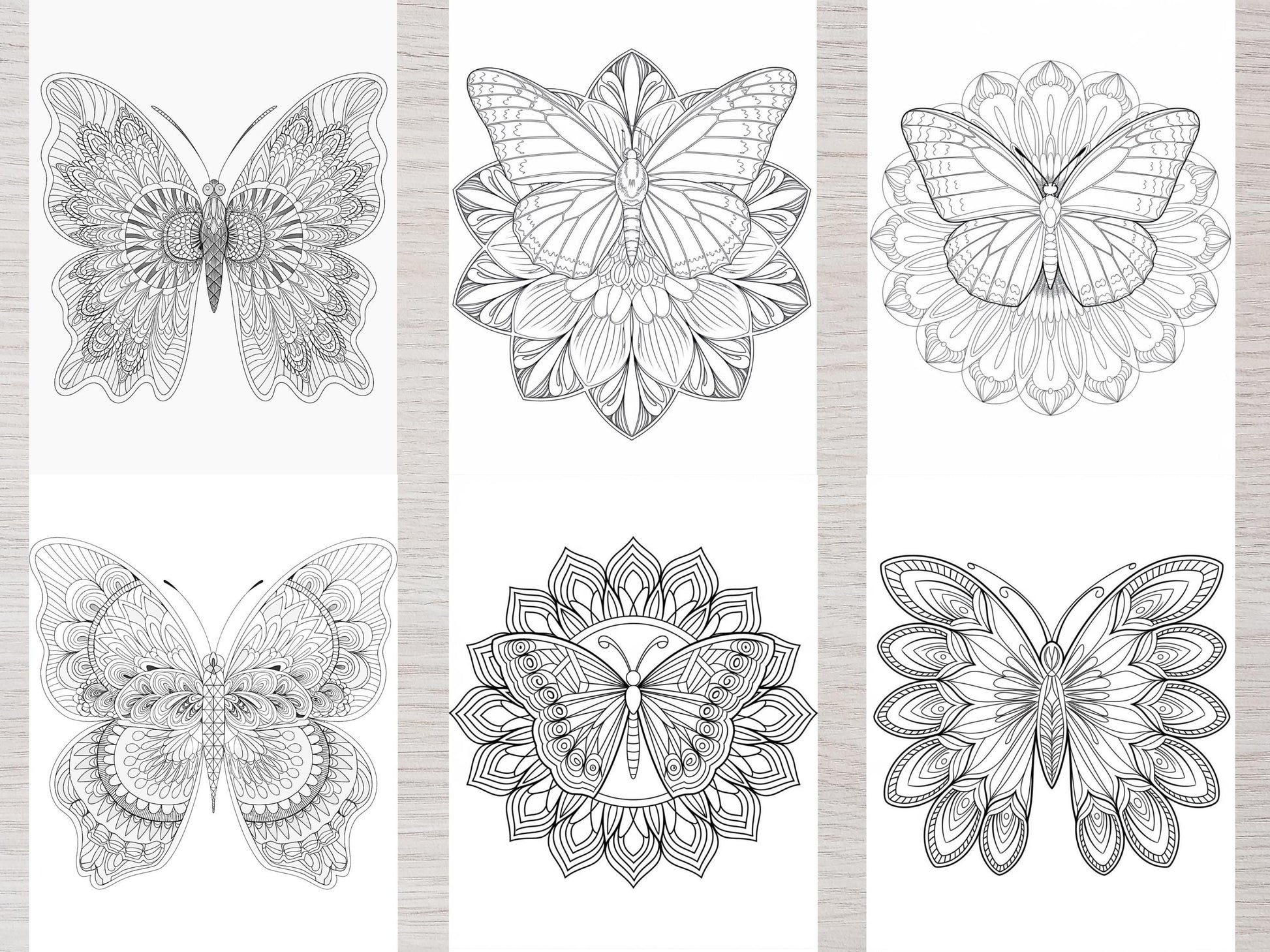 "Páginas para colorear de mandalas / Mandalas imprimibles en PDF para adultos / Diseños de mariposas y flores"